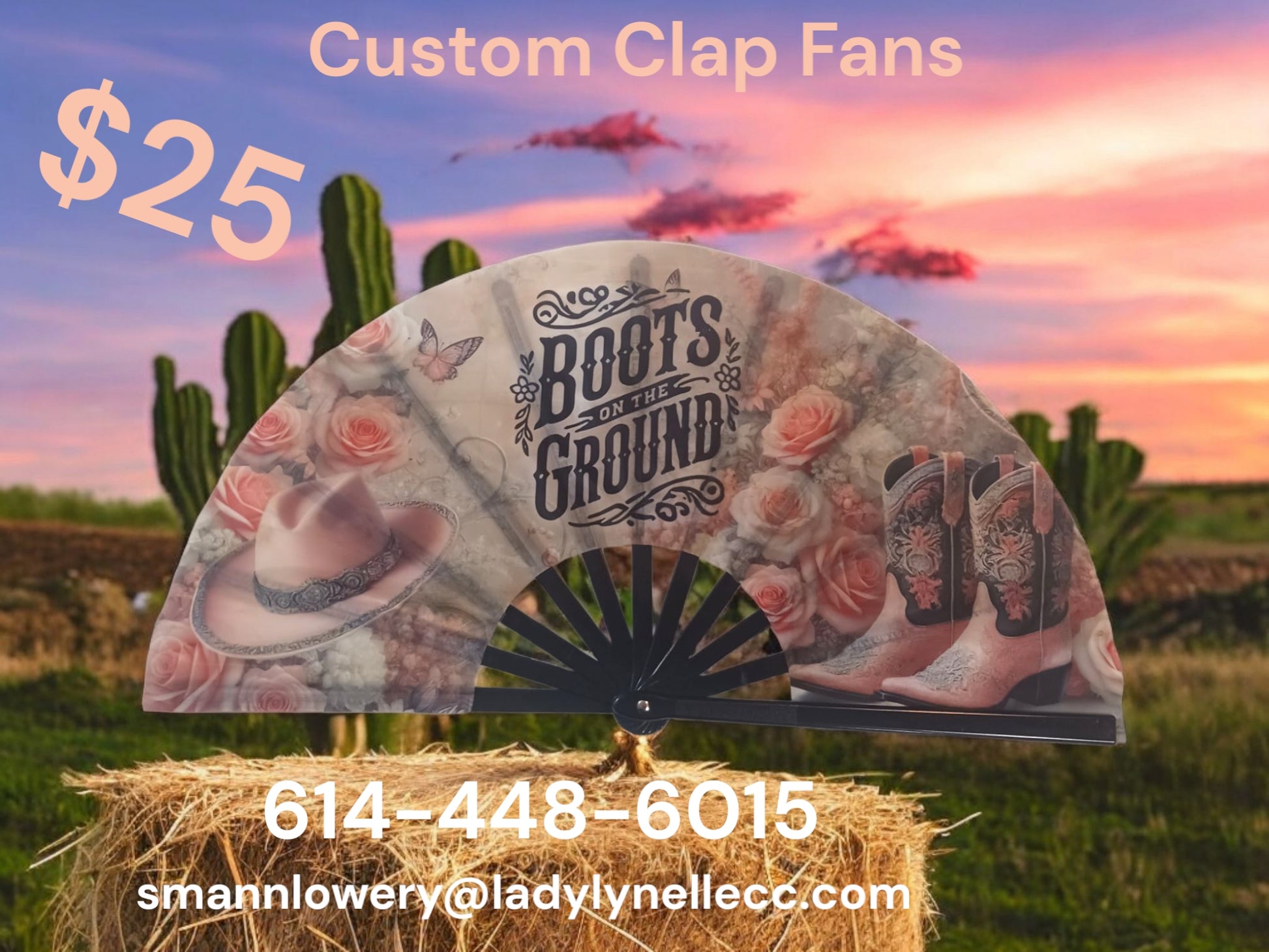 Beautifully designed with the upmost of care. Great for all the fan line dances and great on hot summer days Fans are 13" in height and 25" width. Please allow 1 week prior to shipping.