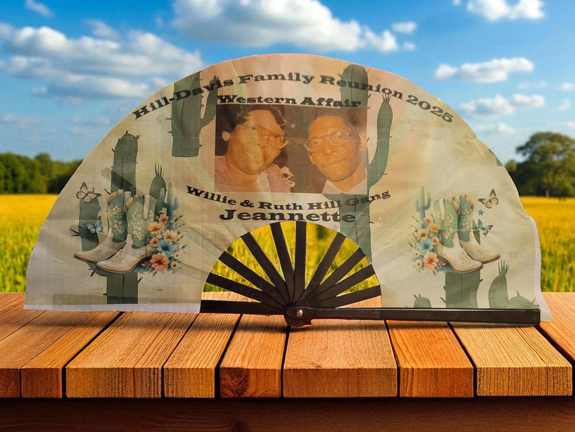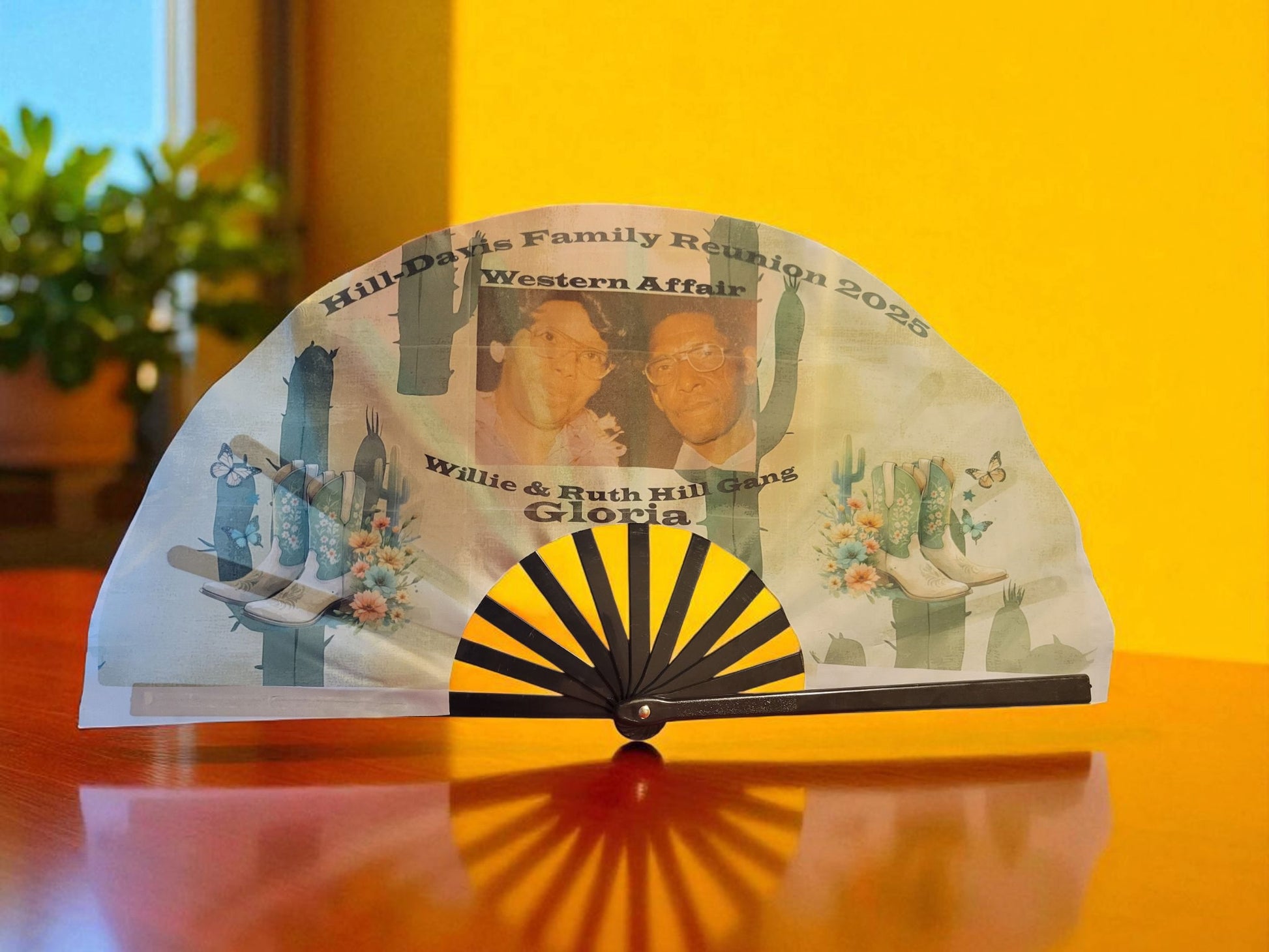 Beautifully hand made clack fans to customize with images and wording. Can be used at any occasions and great gift. for you loved ones Please contact Me through email to send your custom changes to your fan at smannlowery@ladylynellecc.com.